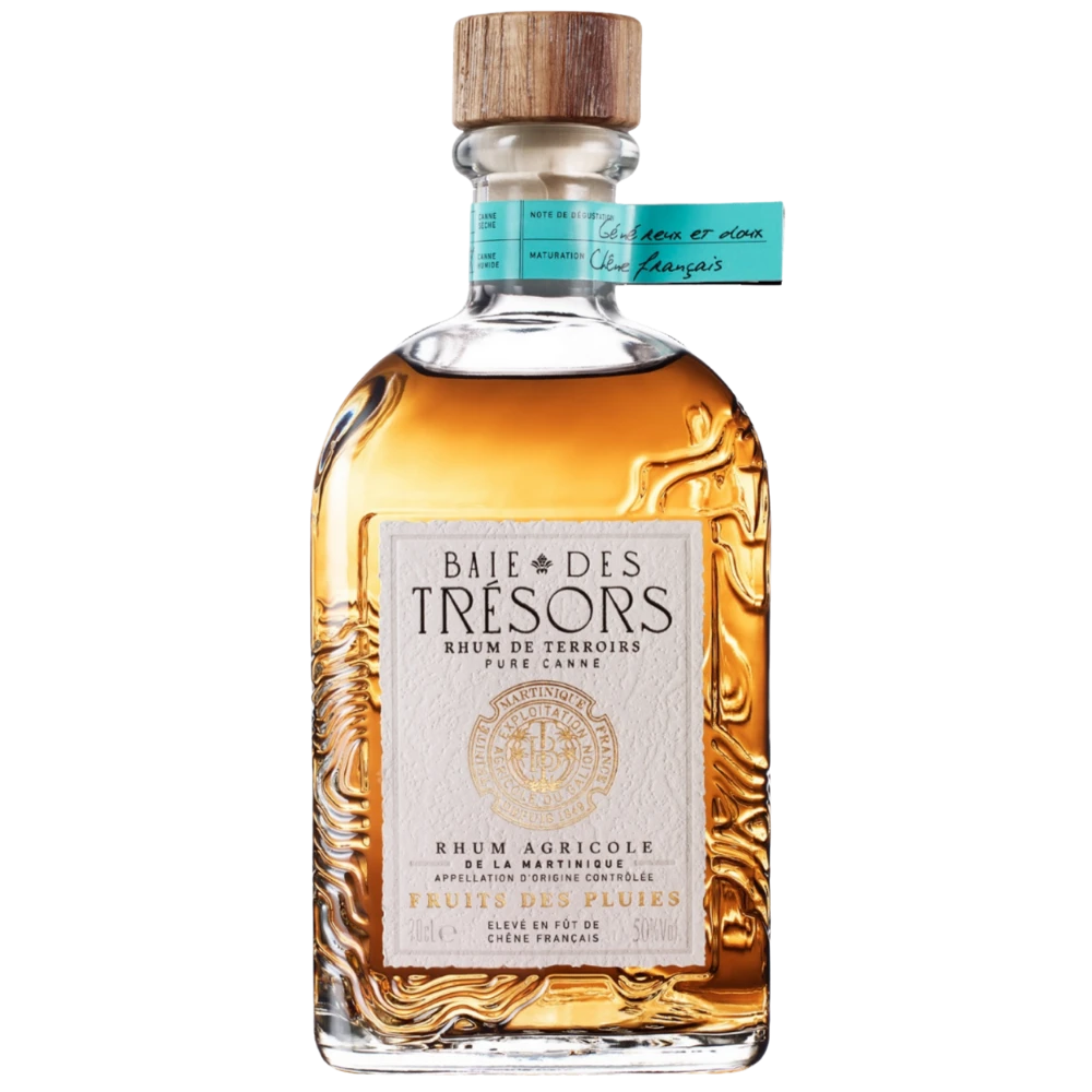 Der exklusive Baie des Tresors Fruits des Pluies Rhum besitzt einen faszinierenden Terroir-Charakter, den wir sonst eigentlich von Wein aus Frankreich kennen. So handelt es sich um Martinique Rum mit AOC-Status, dessen Rohstoff von einer einzelnen Parzelle Land innerhalb der Zuckerplantage stammt. Er basiert auf Zuckerrohr aus Dufferet, wobei diese Lade sich in einem Gebiet mit feuchtem Klima unweit der Zuckerfabrik Galion befindet. Nach der Destillation lagerte der Baie des Tresors Fruits des Pluies Rhum für rund zwei Jahre in Fässern aus französischem Eichenholz, bevor man ihn mit einem hohen Alkoholgehalt abfüllte. Das an Cask Strength Rum in Fassstärke denken lassende Qualitätsprodukt wird übrigens in einer eigens hierfür gefertigten, wunderschönen Flasche aus 70 % recyceltem Glas präsentiert. Man wird also nicht nur in aromatischer und geschmacklicher, sondern auch in optischer Hinsicht verführt.