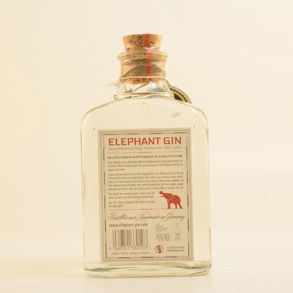 Der Elephant London Dry Gin aus Deutschland überzeugt mit einem Aroma, das zu Beginn vor allem auf Ingwerwürze und Frucht setzt. Etwas Herbales bis Florales gesellt sich dazu. Der herzhafte, ergiebige Geschmack bringt eine Kombination aus Zitrusfrucht, Holunderblüte, Lavendel und dezenter Süße mit. Das Finish wird von trockener Pfefferschärfe aufgewertet. Im Laufe des Trinkerlebnisses gewinnt der Gin etwas an Süße und gleicht dies mit einem waldigen Unterton von Pinien aus den Bergen aus. Alles in allem zeigt sich der Elephant London Dry Gin also von der ungewöhnlichen, doch stimmigen Seite. Er ist nicht nur etwas für Afrika-Fans oder alle, die gern Elefanten unterstützen wollen. Der hochwertige London Dry Gin der Marke Elephant mundet pur genauso wie in Mixgetränken.