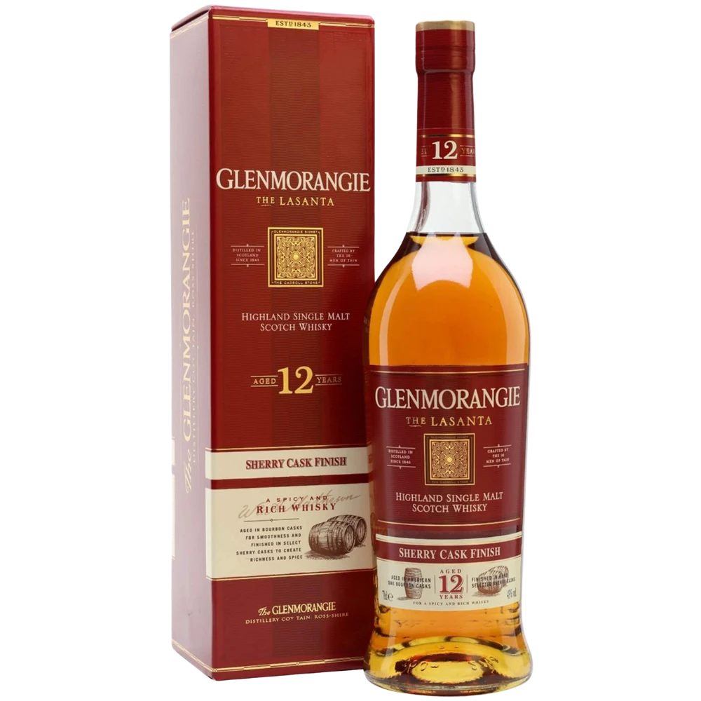 Der schmackhafte Glenmorangie Lasanta Highland Whisky ist Teil der populären Expressions-Serie von Glenmorangie und wurde insgesamt 12 Jahre lang gelagert. Sein Sherry-Finishing macht ihn zu einem zeitgenössischen, fruchtbetonten Scotch, zu dem nur wenige Nein sagen können. Die kurze Nachreifephase in spanischen Oloroso-Sherry-Fässern hat dem Highland Malt sichtlich gut getan – so gut, dass er sogar zweimal Doppelgold bei der „San Francisco World Spirits Competition“ gewann. Viele weitere Goldmedaillen und eine durchschnittliche Bewertung von über 90 Punkten sprechen für den Glenmorangie Lasanta Highland Whisky. Kein Wunder, dass bei solchem Genuss die Firma Moët-Henessy im Jahre 2004 rund 300 Millionen Euro ausgab, um sich Glenmorangie Whisky für ihr Portfolio an luxuriösen Spirituosen zu sichern.