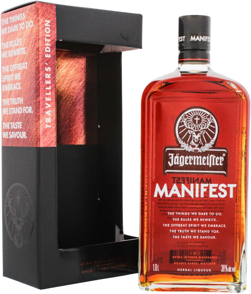 Der kultige Jägermeister Manifest Kräuterlikör wurde eigens für das Super-Premium-Segment hergestellt, und das wie gewohnt mit viel Liebe zum Detail und diversen Kräutern, Gewürzen und anderen pflanzlichen Botanicals. Die leuchtende, dunkelrote bis bräunliche Farbe kommt in der bauchigen Flasche gut zur Geltung. Der hochwertige, luxuriös wirkende Jägermeister Manifest Kräuterlikör profitiert davon, dass er nach der Destillation und Aromatisierung sowohl in kleinen als auch in großen Eichenfässern lagerte. Diese kurze Reifung hat ihn veredelt und dazu beigetragen, dass der Likör seine Mitte gefunden hat.