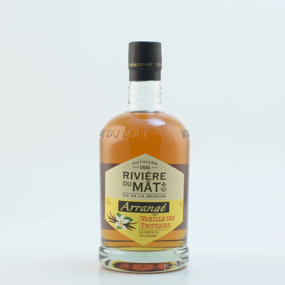 Der feine Riviere du Mat Rhum Arrange Vanille nennt sich mit vollem Namen „Vanille des Tropiques“, um seinen tropischen Charakter zu betonen. Er steht für exotischen Genuss, von dem man kaum genug bekommen kann. Die Firma Rivière du Mât hat als Grundlage für die unwiderstehlich leckere Spirituose weißen Rum aus der eigenen Produktion verwendet. Er wurde nicht nur mit natürlicher Vanille, sondern auch mit einem geheimen Rezept an Gewürzen verfeinert. Diese Art der Aromatisierung teilt sich der Riviere du Mat Rhum Arrange Vanille mit den im selben Jahr veröffentlichten Abfüllungen wie Ananas, Banane und Coco (Kokosnuss).