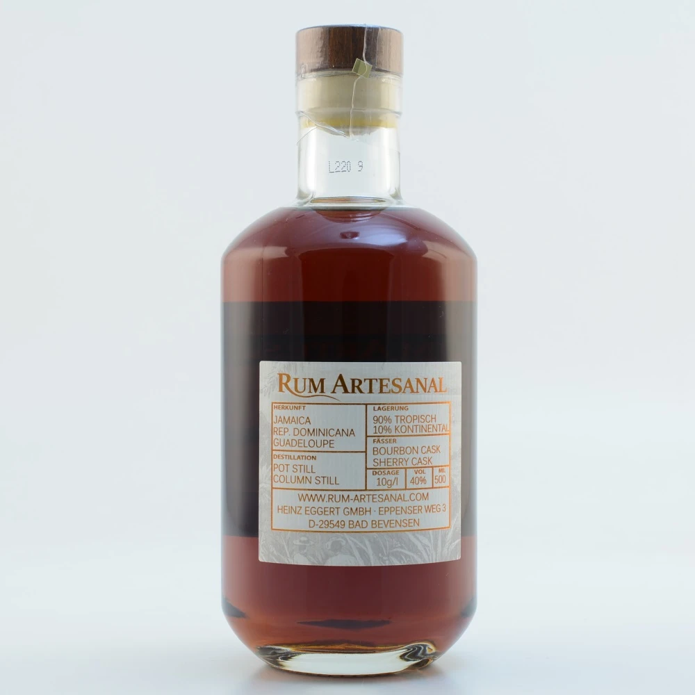 Der finessereiche Rum Artesanal Caribbean Island Blend befindet sich in bester Gesellschaft. Neben diesem Verschnitt aus Rum verschiedener karibischer Inseln gibt es z. B. noch einen Blend aus zentralamerikanischem Rum sowie einen Blend aus Rum der französischen Antillen. Länder wie Kuba und die Dominikanische Republik erhalten zudem die Chance, mit Einzelfassabfüllungen zu begeistern. Der Rum Artesanal Caribbean Island Blend bietet eine feine Alternative hierzu. Er stellt eine Neuheit dar, bei der drei Karibikinseln zueinanderfinden: Der Rum aus Jamaika durfte elf Jahre reifen, der Ron Dominicano aus DomRep lagerte acht Jahre, und die geheime dritte Komponente in der Assemblage ist ein dunkler Rum aus Guadeloupe, dessen Alter nicht bekannt ist. Jener tanzt als Rhum Agricole aus Zuckerrohrsaft statt Melasse ein wenig aus der Reihe.