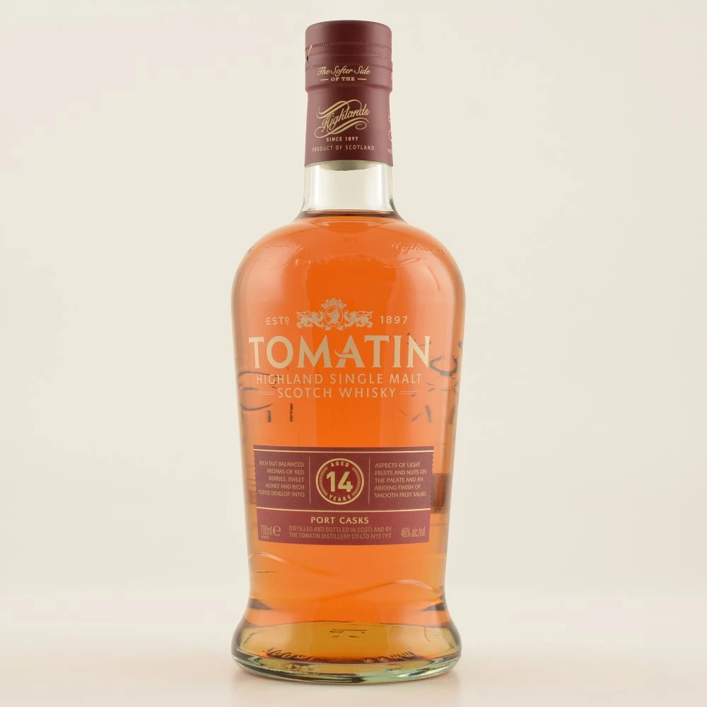 Der exquisite Tomatin 14 Jahre Highland Single Malt Whisky wird in den Highlands von einer renommierten Destillerie gebrannt, die auf mehr als 100 Jahre Erfolg zurückblicken kann und angeblich schon viele Jahrhunderte davor illegal Scotch brannte. Kennzeichnend für den rundum gelungenen Tomatin 14 Jahre Highland Single Malt Whisky ist, dass er erst 13 Jahre lang im klassischen Bourbonfass aus amerikanischer Weißeiche reifte und dann einem einjährigen Finishing im Portweinfass aus europäischer Eiche unterzogen wurde. Diese hatten zuvor Tawny Port aus Portugal beherbergt, der einen unnachahmlichen Einfluss auf den Highland Malt ausübte.