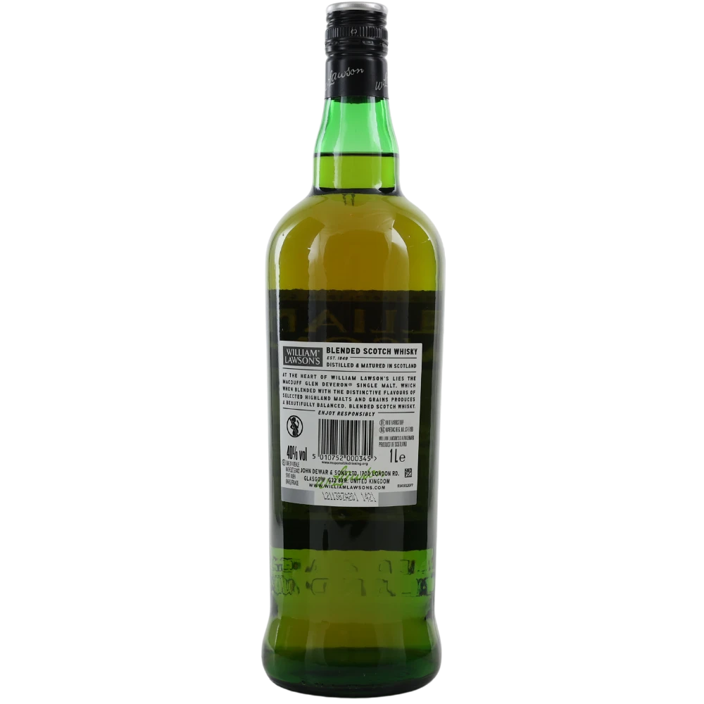 Der rundum gelungene William Lawson’s Whisky umfasst einen Blend aus den feinsten Whiskys der Region Speyside in den Highlands. Der Blended Scotch profitiert von einem hohen Anteil an Malt Whiskys, was ihn nicht zuletzt facettenreich und weich macht. Man kann den Blend aus Schottland hervorragend pur trinken, wobei manche ihn auch mit Cola mischen oder ihn für Longdrinks und Cocktails verwenden. Charakteristisch für den finessereichen William Lawson’s Whisky mit der hellen Farbe ist, dass er sich sogar für Einsteiger eignet. Er ist im internationalen Rahmen ein Garant für Zufriedenheit. In der „Elite List“, die von IWSR (International Wine & Spirit Research) für 2011 veröffentlicht wurde, rangierte die Marke William Lawson dank der exzellenten Verkaufszahlen als bester Scotch auf dem sechsten Platz.